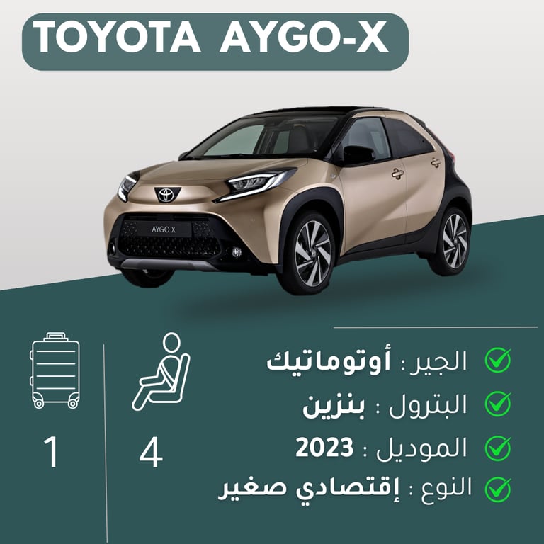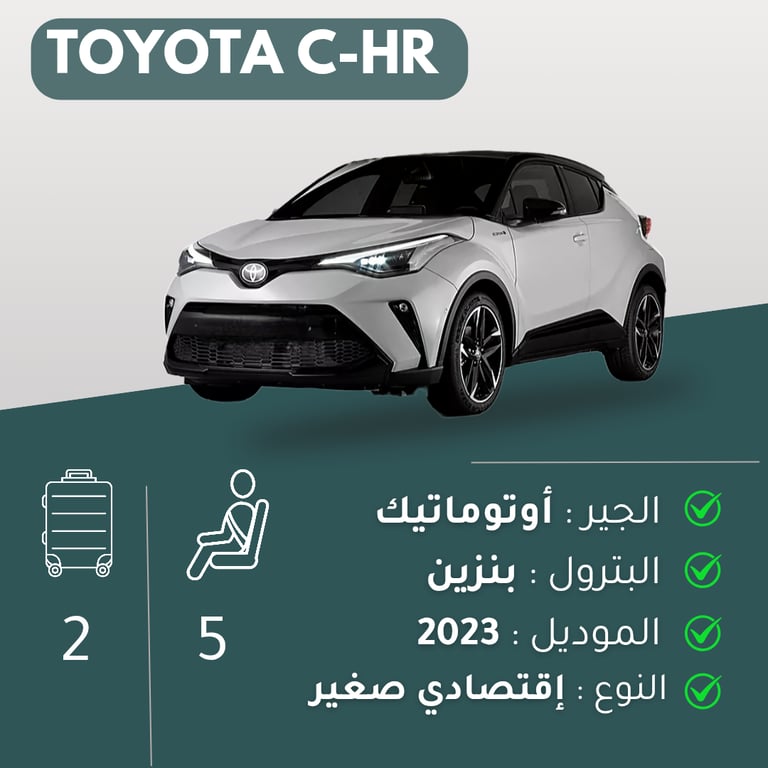 ● مركبات عملية تجمع بين الأداء الجيد واستهلاك الوقود المنخفض، مما يجعلها مثالية للتنقل داخل المدن والرحلات اليومية ● أسعار السيارات الاقتصادية يبدأ من 240 حتي 300 ريال/درهم مع التأمين الشامل